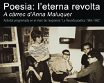- Visita comentada a l'exposició La Revolta Poètica 1964-1982, on podrem veure tot un període d'efervescència de la poesia.Després de la visita sentirem, a la sala d'actes, un recital dels nostres poetes, des de Verdaguer a Casasses, en una alternança que ens permeti veure i sentir com ha evolucionat la poesia catalana.El recital constarà de poemes de Jacint Verdaguer, Enric Casasses, J.V. Foix, Biel Mesquida, Joan Salvat-Papasseit, Pau Riba, Ma. Antònia Salvà, Maria-Mercè Marçal, Vicent Andrés Estellés, Feliu Formosa, Joan Vinyoli, Joan Brossa, Gabriel Ferrater, Narcís Comadira, Josep Palau i Fabre, Marta Pessarrodona, Carles Riba, Francesc Parcerisas.