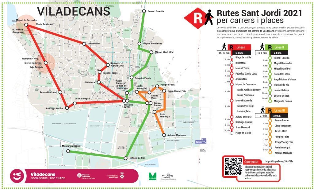 - De nord a sud i d'est a oest, mitjançant aquesta xarxa que el Museu i la Biblioteca de Viladecans ens ofereixen, podreu descobrir els autors i les autores de llibres que s'amaguen als carrers de Viladecans.Proposem caminar per caminar, pas a pas, conversant o, simplement, reordenant les nostres emocions. Per gaudir de la primavera a la ciutat qualsevol excusa és vàlida.Seguint el següent enllaç trobareu un mapa interactiu amb les rutes i a més a més un Kahoot per a posar a prova els vostres coneixements. Us atreviu?https://tinyurl.com/35ty79fa