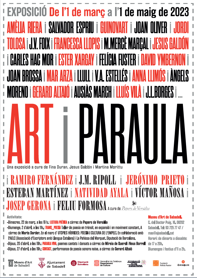 - L'exposició Art i Paraula es presenta a Sabadell amb un àmbit especialment dedicat a l'associació Papers de Versàlia, que treballa des de l'any 2001 en diferents iniciatives per promoure la creació poètica i la seva difusió.